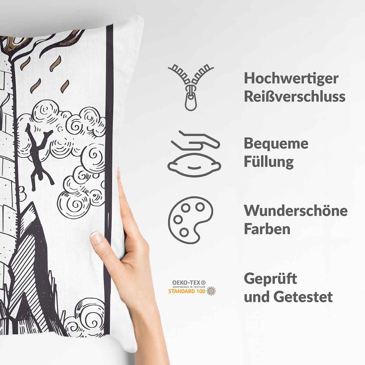 The breathable pillowcase with a zipper is made of high-quality cotton. It can be easily removed and washed at 40°C.